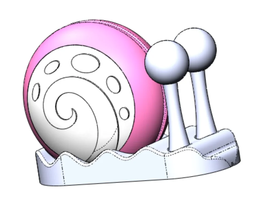 The yo-yo’s design focused on producing a simple yet recognizable design to ensure a high quality assembly throughout the manufacturing run. To achieve this, our 5-person team chose to take Gary the Snail out of Bikini Bottom, bringing him to the classroom at MIT. Spongebob Squarepants’ companion in his pineapple under the sea is composed of three plastic pieces secured by a press fit between the outer retainer ring and the base plate, sandwiching a lip on the middle piece to secure each yo-yo half.